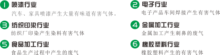 一、產生廢氣、油煙、廢水、粉塵等工藝設備或工況,選(xuǎn)取不(bú)同處理設備(bèi)
