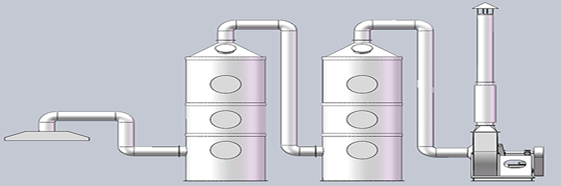 (1)工藝流程的係統組成:由(yóu)廢氣收集係統、引風(fēng)係統、廢氣淨化係統、排氣係(xì)統構成。